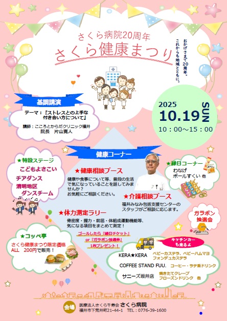 これまで支えてくださった地域のみなさまへの感謝の気持ちも込めて、「さくら健康まつり」を開催いたします!
